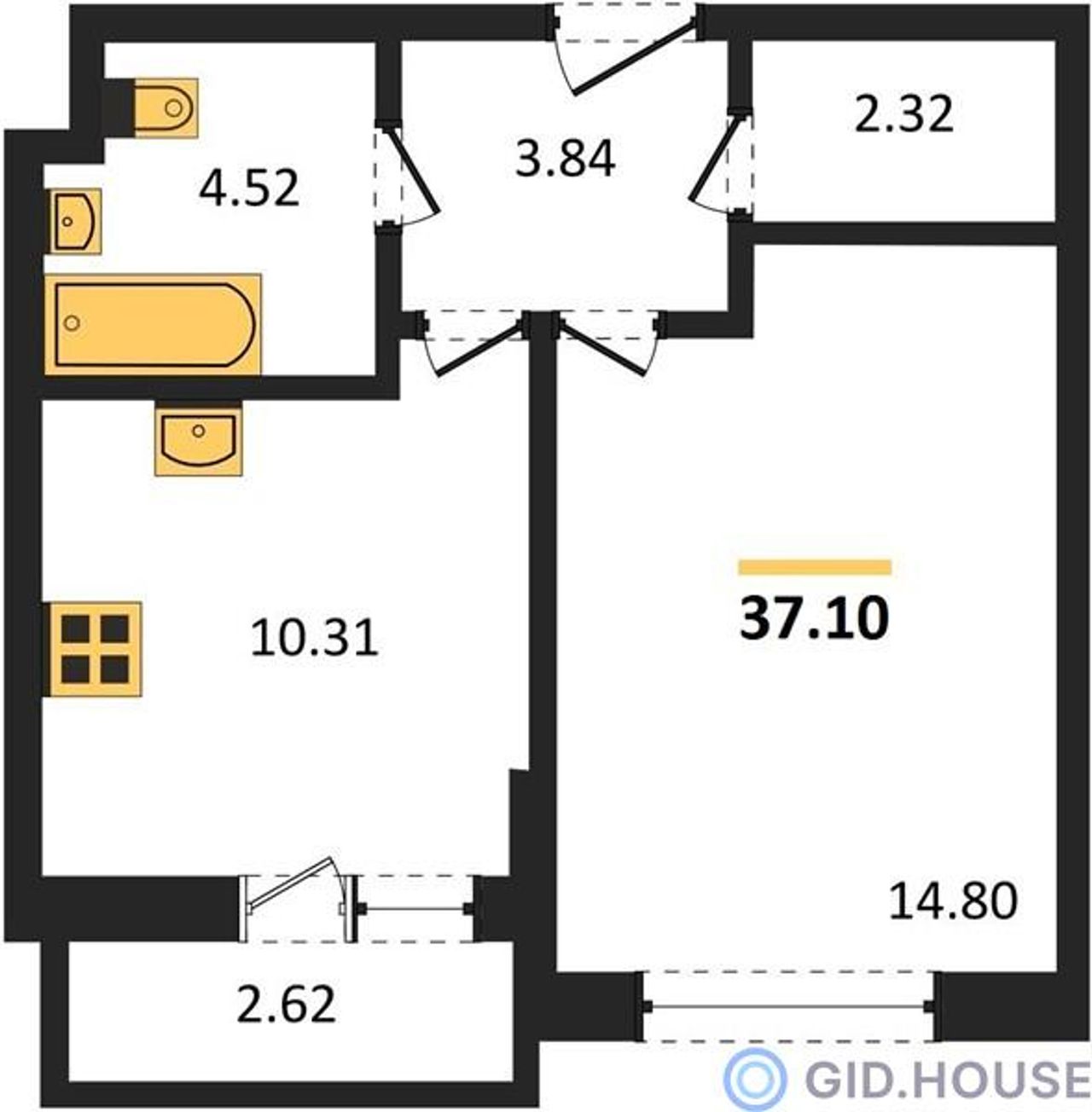 1-комнатная — 37,1 м² 2/24 эт. в Левада