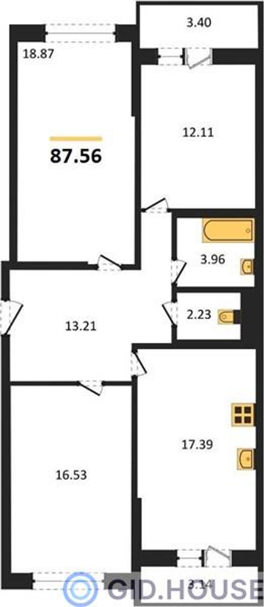 3-комнатная — 87,56 м² 2/24 эт. в Левада