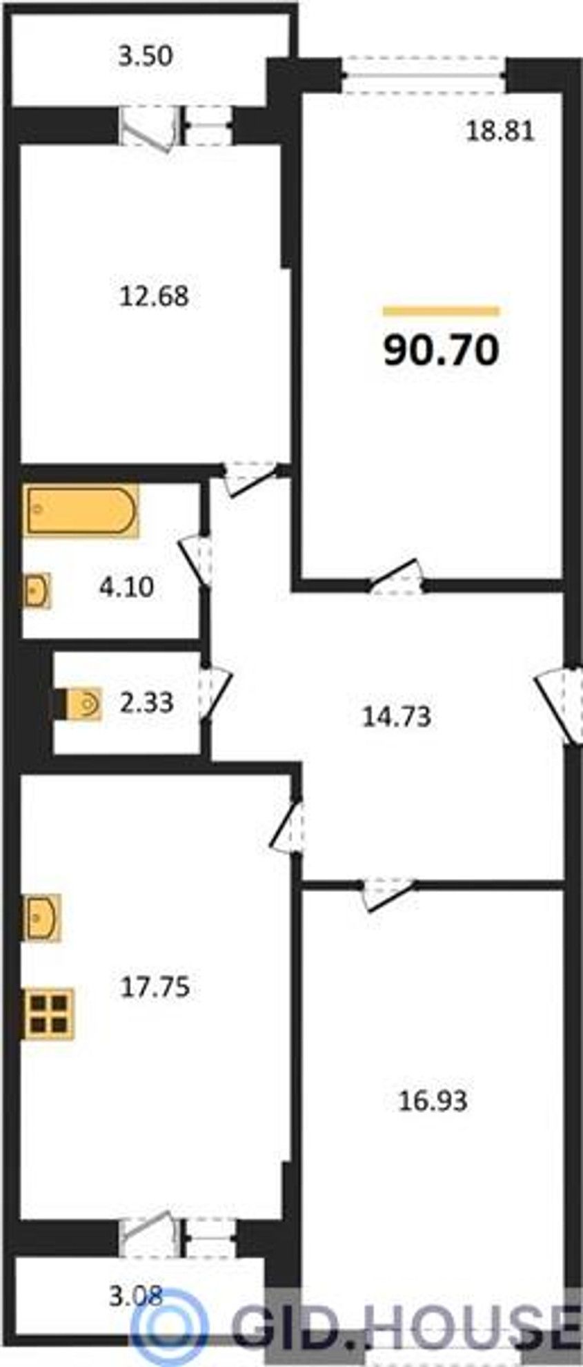 | 3-комн. | 81 - 91 м² | 9,6 - 11,6 млн ₽ |