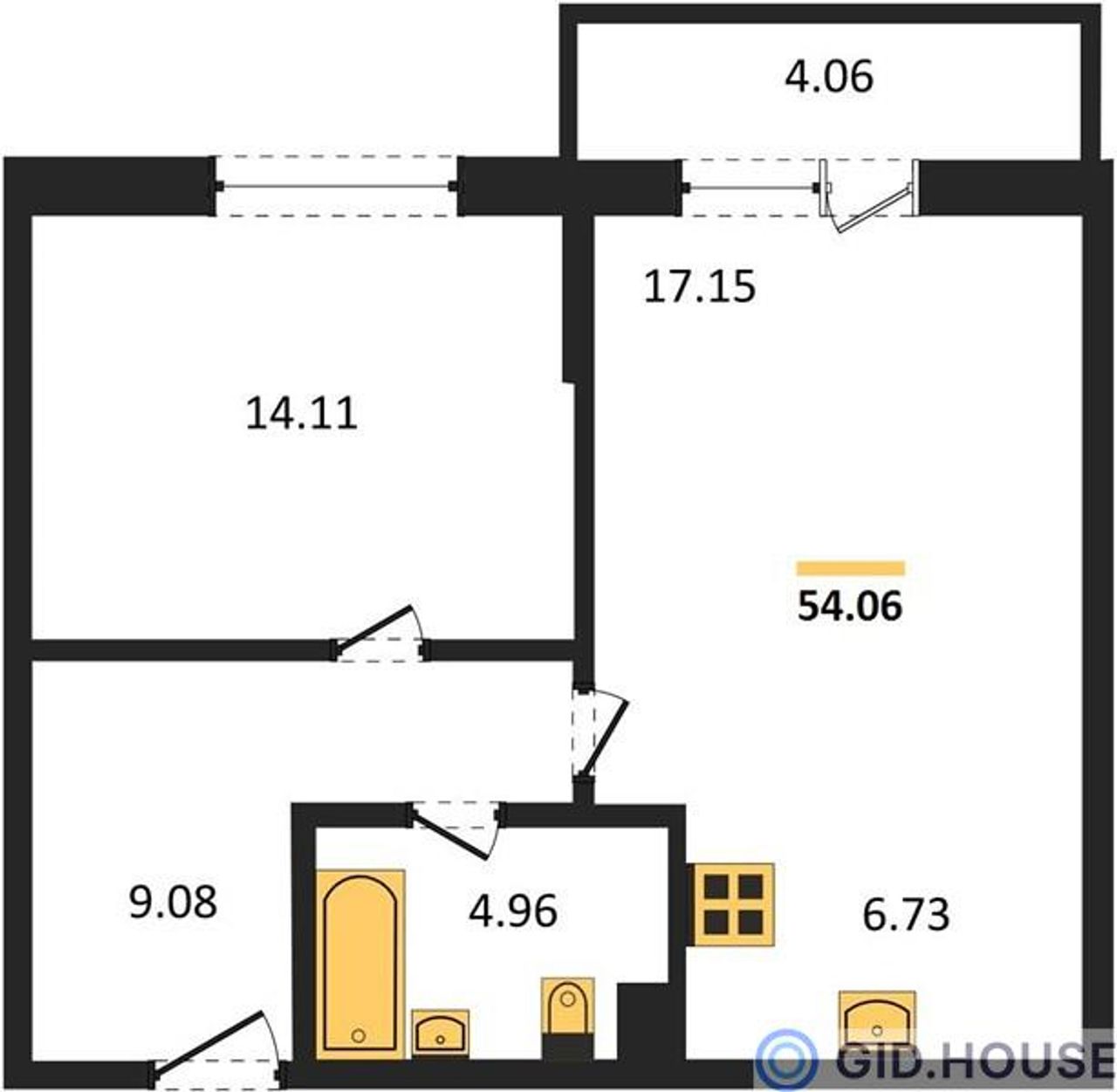 1-комнатная — 54,06 м² 2/24 эт. в Левада
