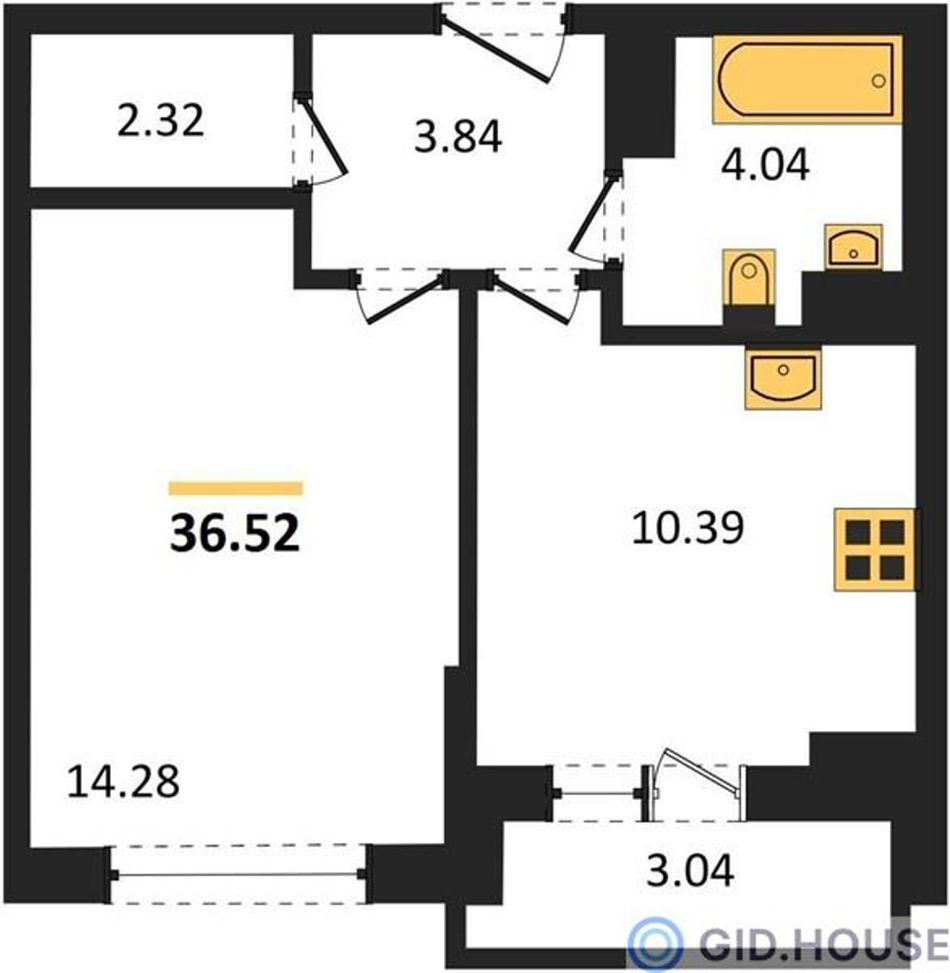 Общая площадь36,52 м²