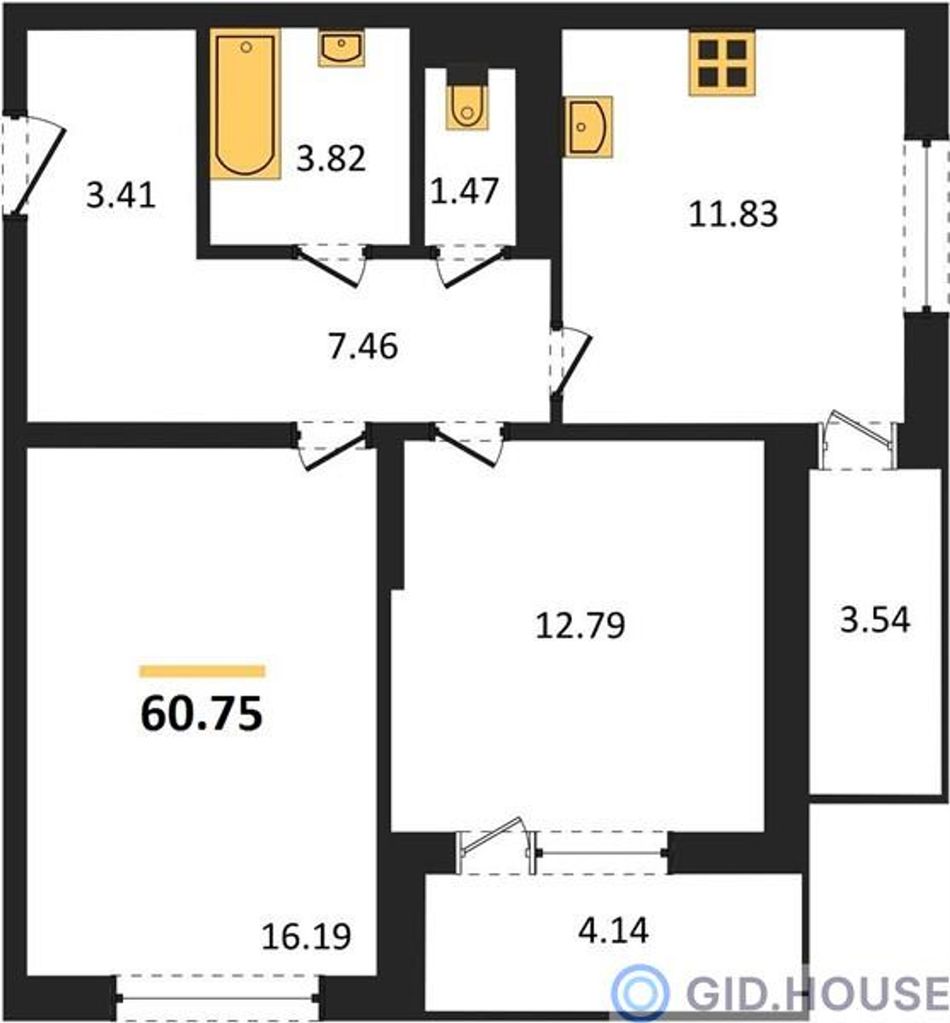 2-комнатная — 60,75 м² 8/24 эт. в Левада