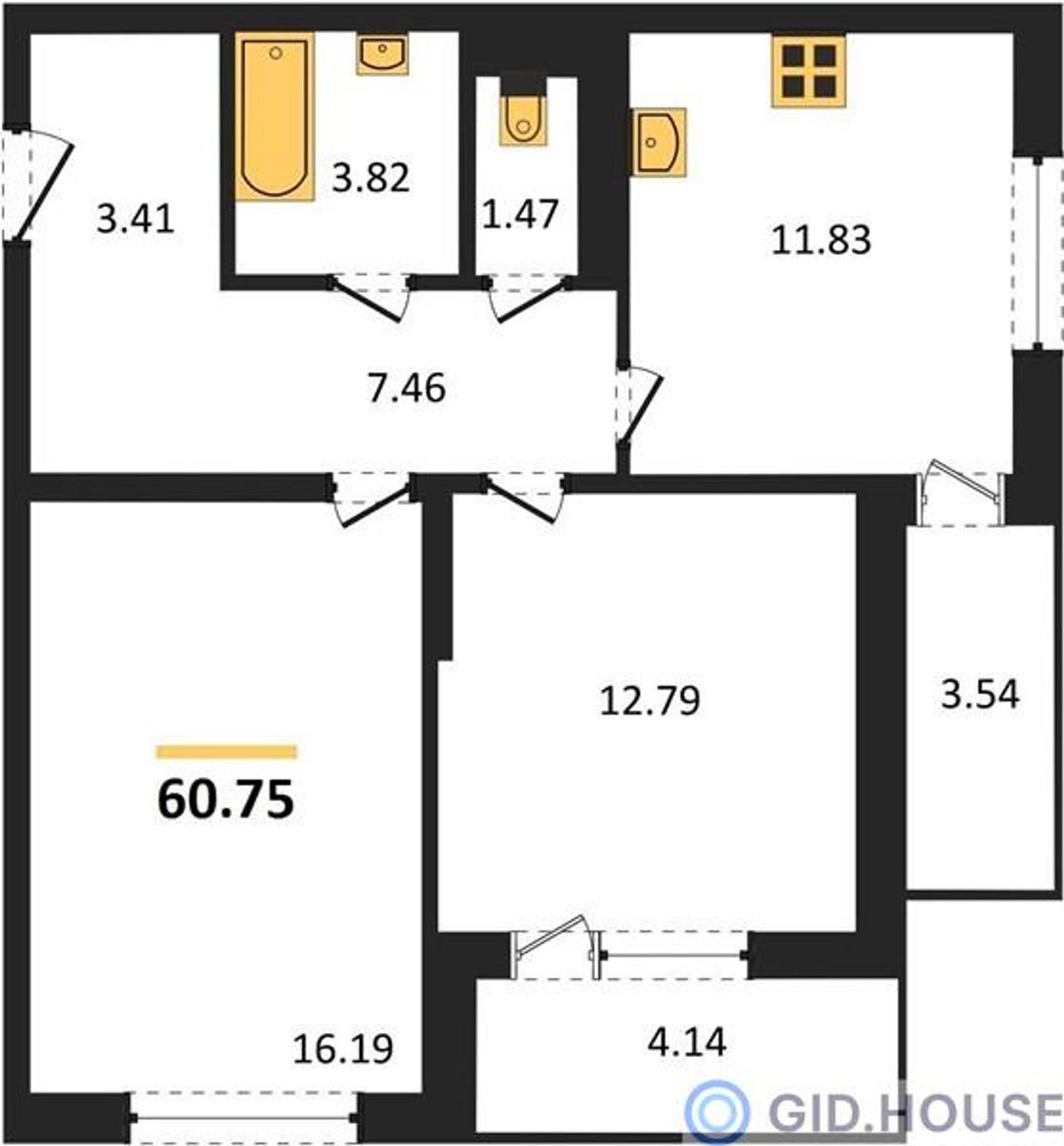 2-комнатная — 60,75 м² 17/24 эт. в Левада