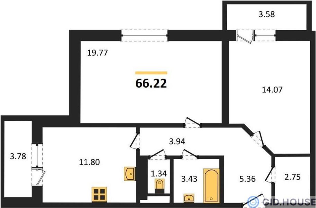 Общая площадь66,22 м²