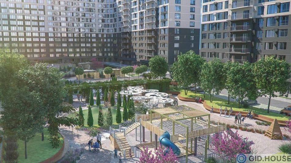 Прилегающая к комплексу территория благоустраивается с использованием ландшафтного озеленения. Во дворе планируются удобные прогулочные дорожки, детские площадки, разделенные по возрастным категориям, места для семейного отдыха и спорта. На первом этаже по проекту – магазины и другие коммерческие заведения. В подвале будет подземный паркинг.