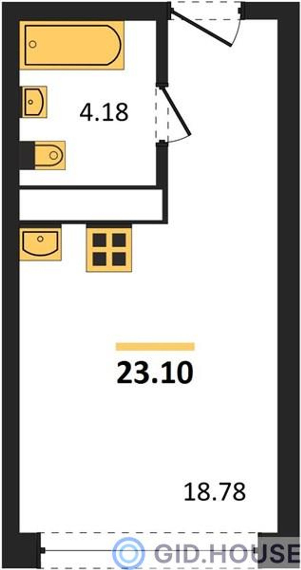 Студия — 23,1 м² 23/24 эт. в Гарантия на Обрывной