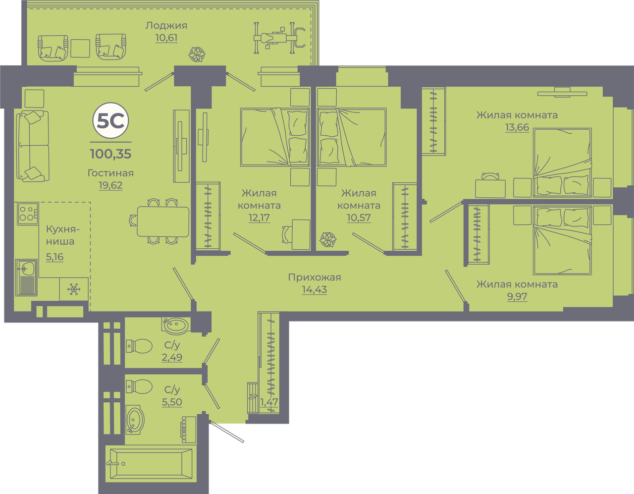 4+ комнатная — 100,35 м² 6/24 эт. в Сокольники