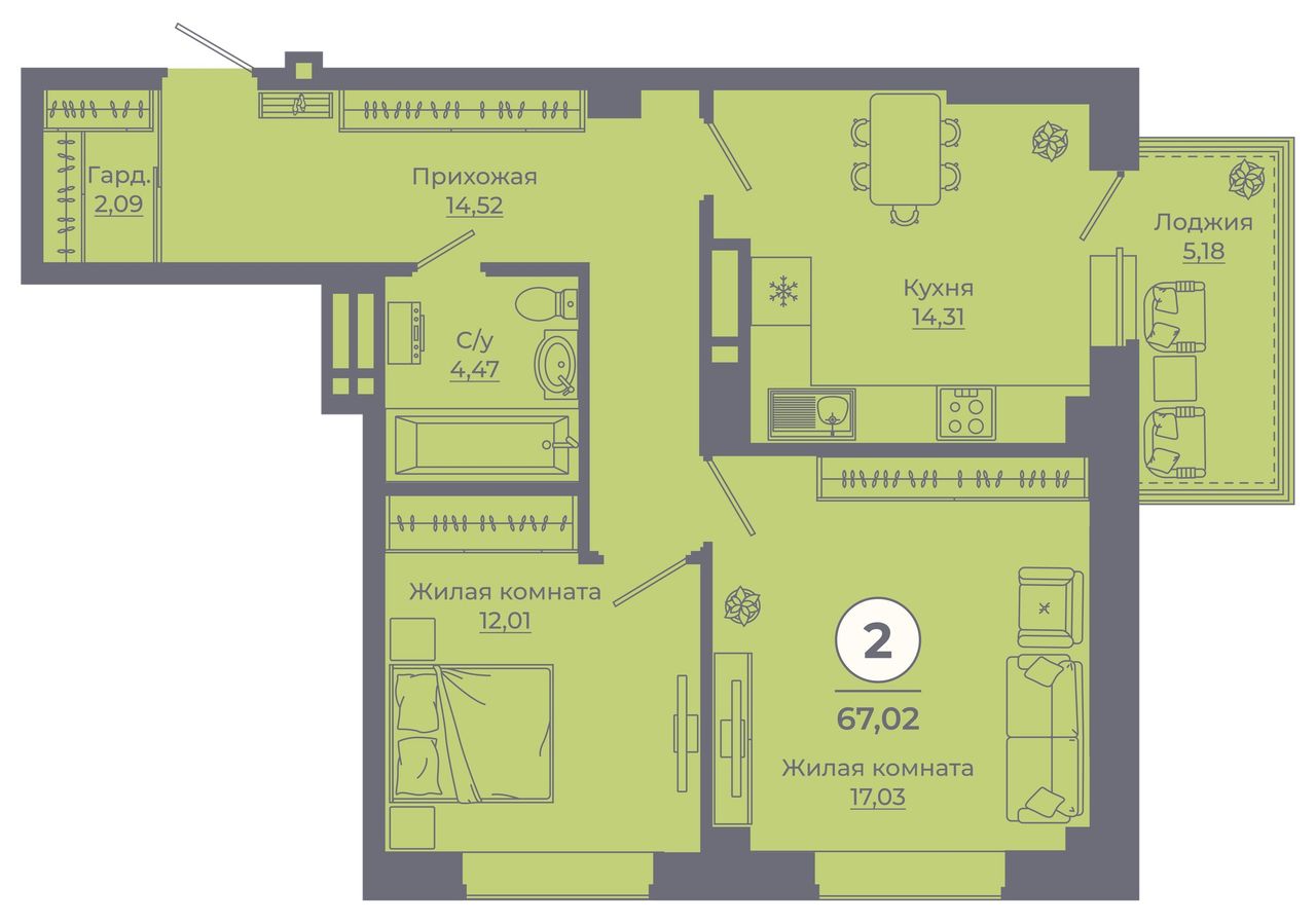 Общая площадь67,03 м²