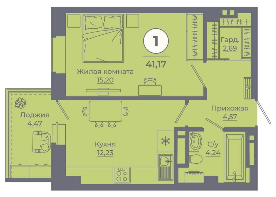 | 1-комн. | 39 - 40 м² | 5 - 5,6 млн ₽ |