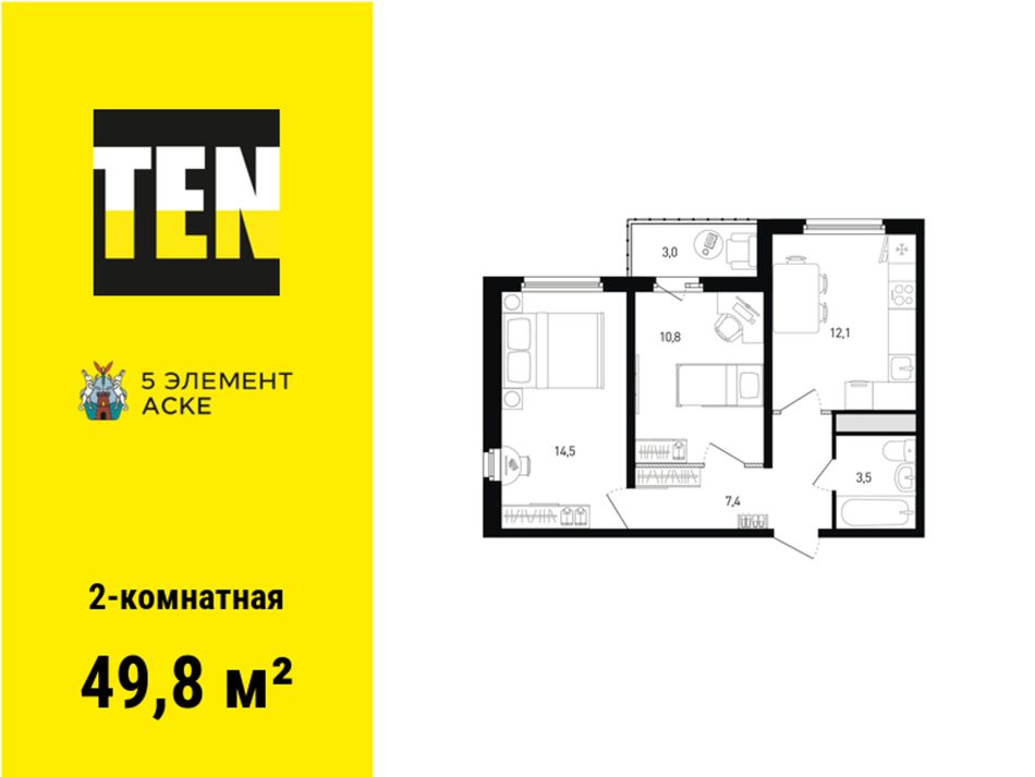 2-комнатная — 49,8 м² 8/16 эт. в 5 элемент Аске