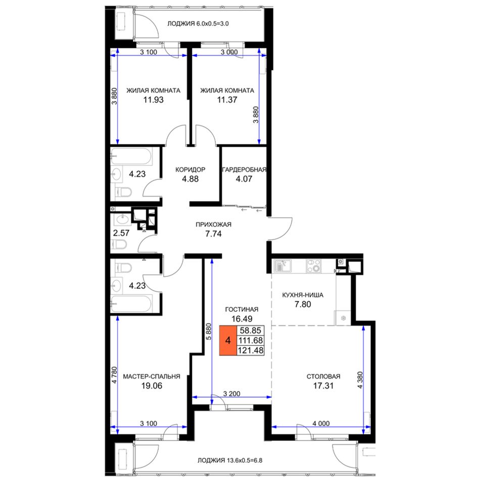 4+ комнатная — 122,7 м² 16/16 эт. в Сегодня