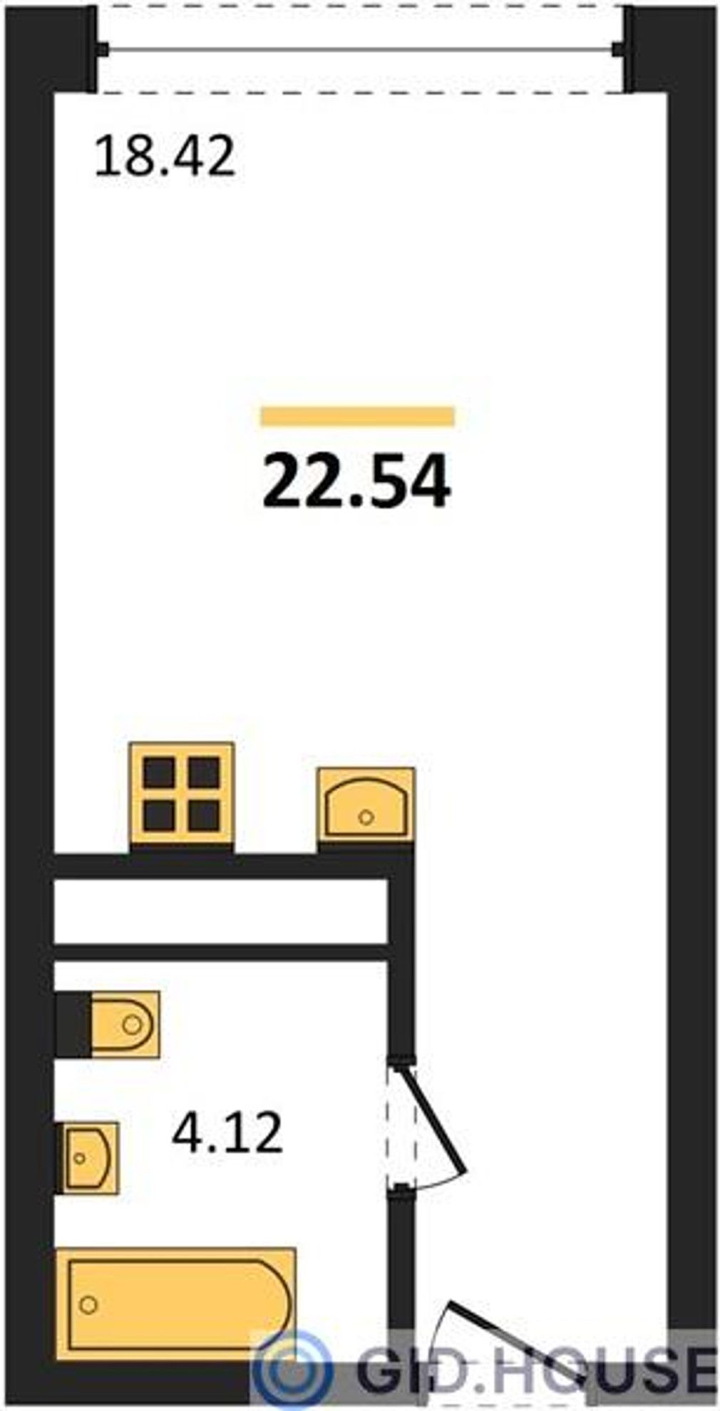 Общая площадь22,54 м²