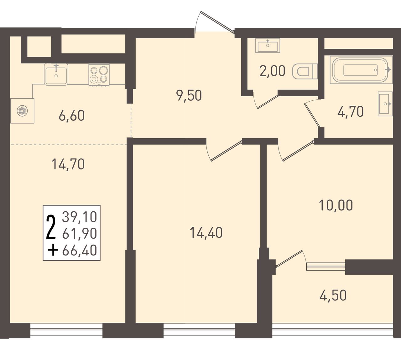Общая площадь66,4 м²