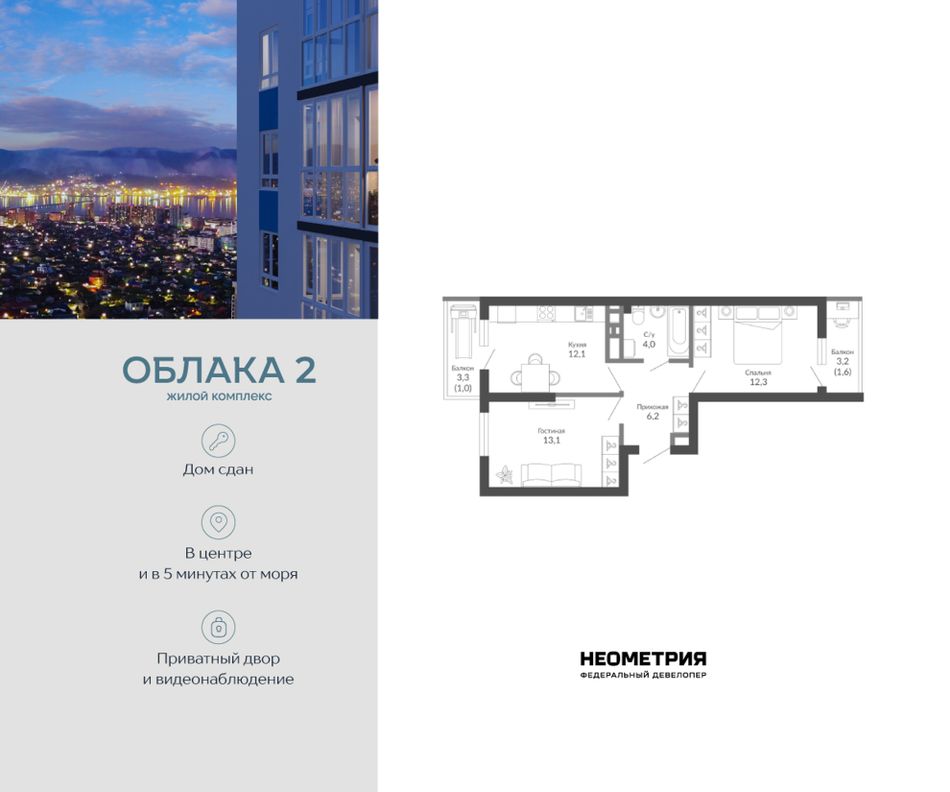 Продается квартира в жилом комплексе «Облака» от федерального девелопера «Неометрия».