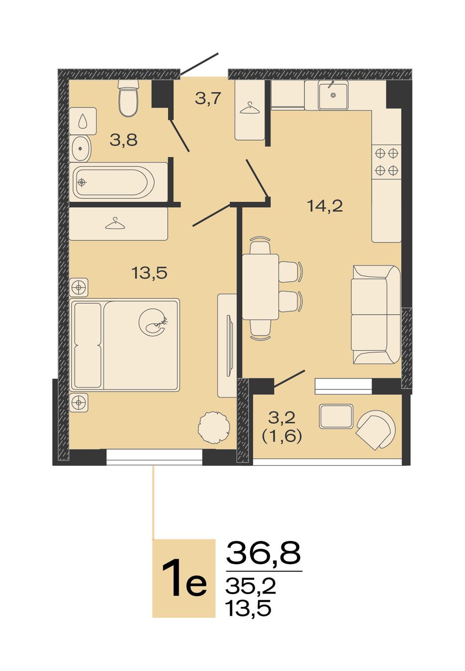 Общая площадь36,8 м²