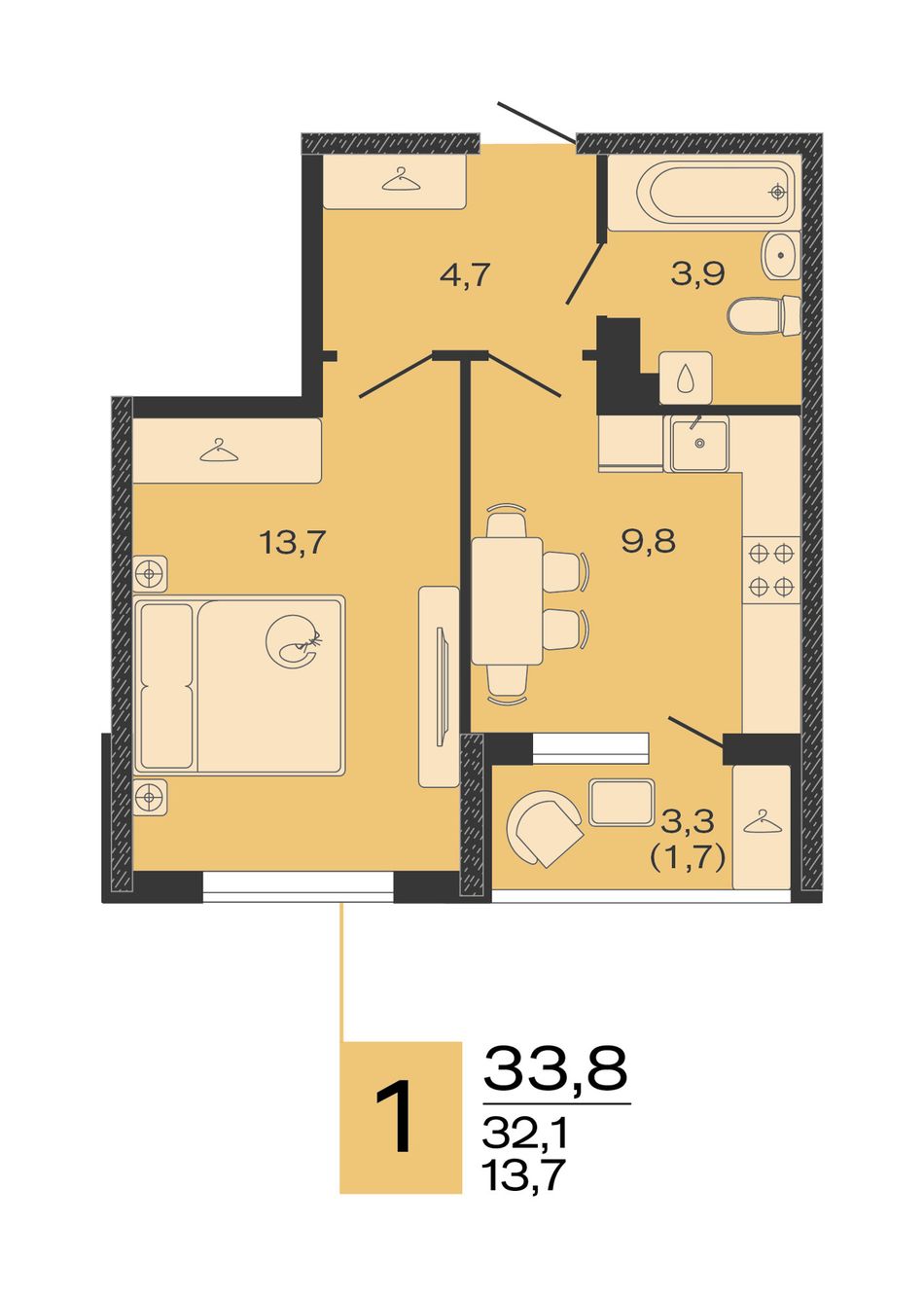 Общая площадь33,8 м²