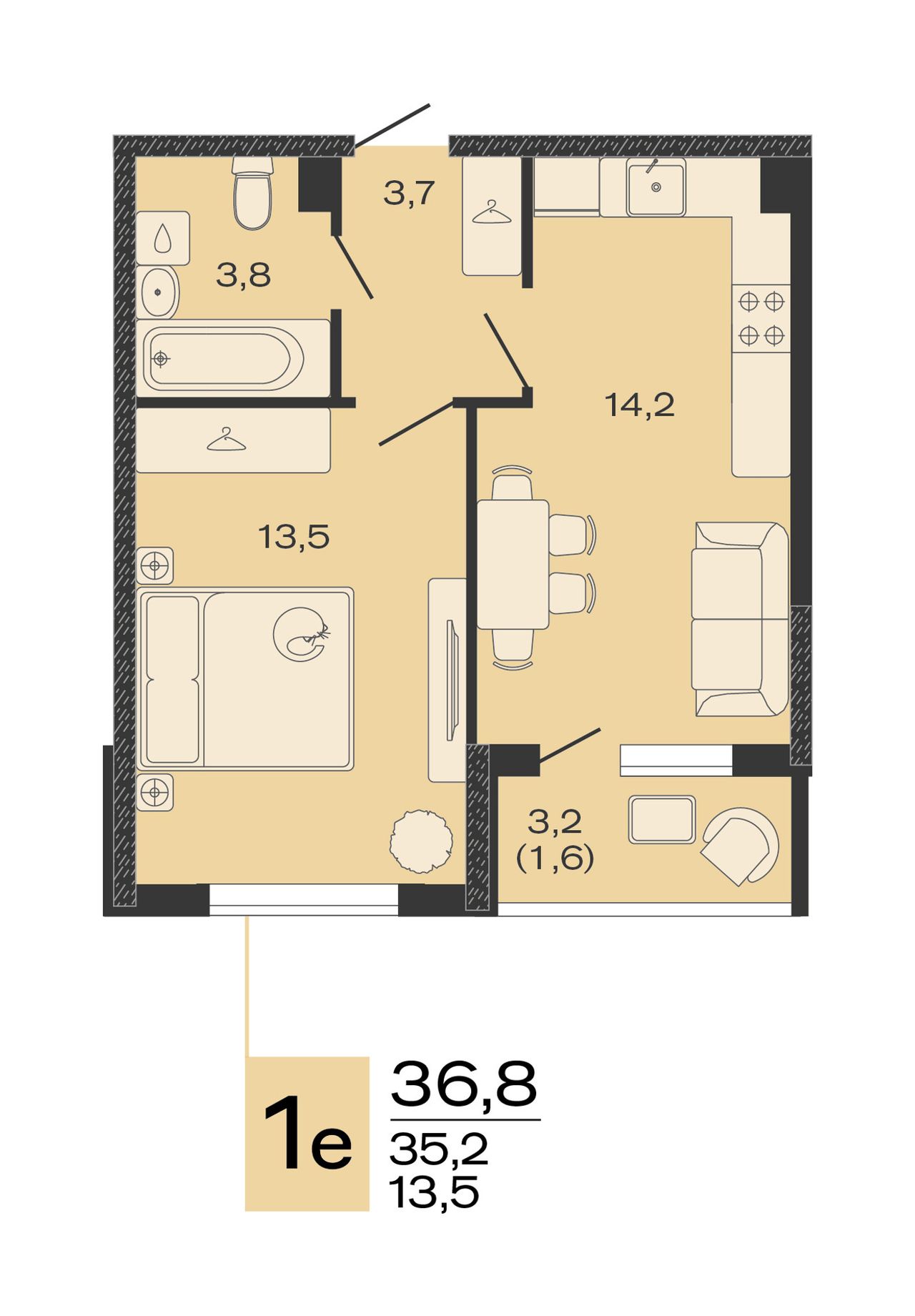 1-комнатная — 36,8 м² 4/4 эт. в Дзенпарк