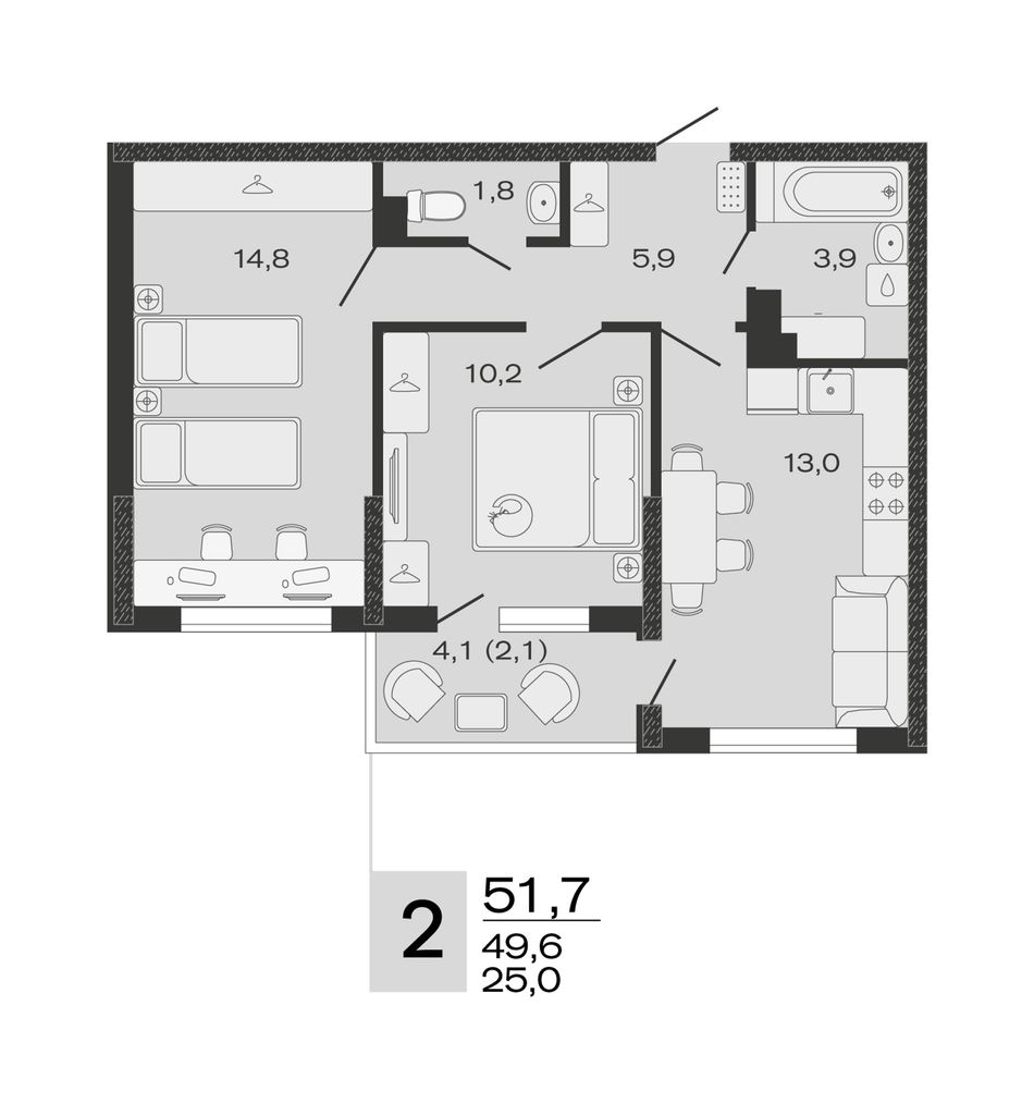 Общая площадь51,7 м²