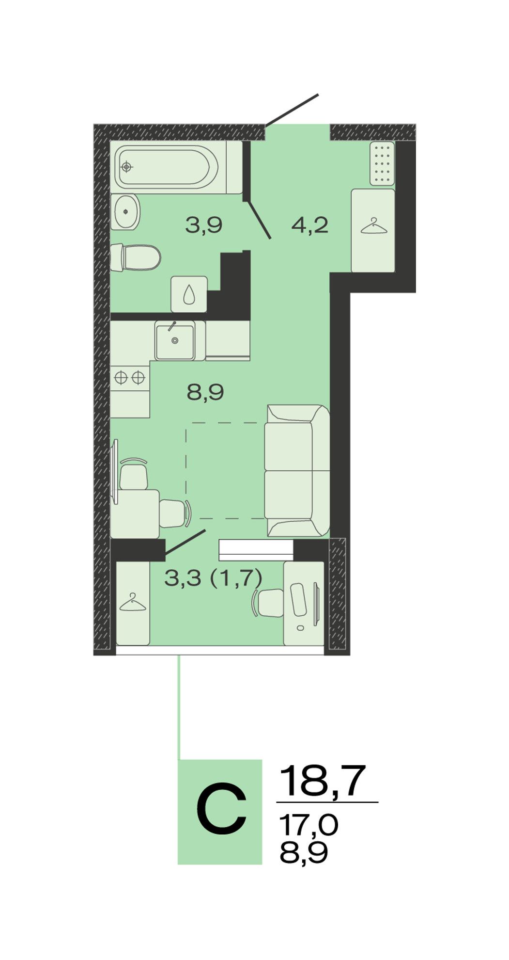 Студия — 18,7 м² 1/4 эт. в Дзенпарк