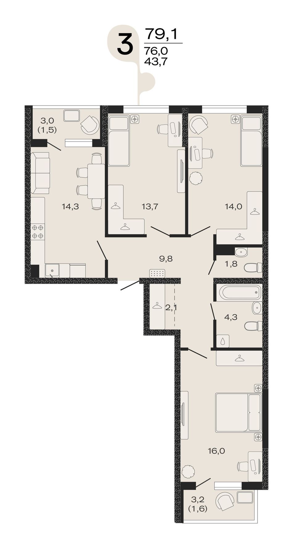 Общая площадь79,1 м²