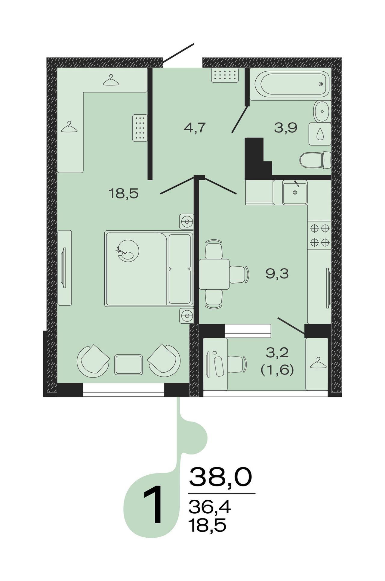 Общая площадь38 м²