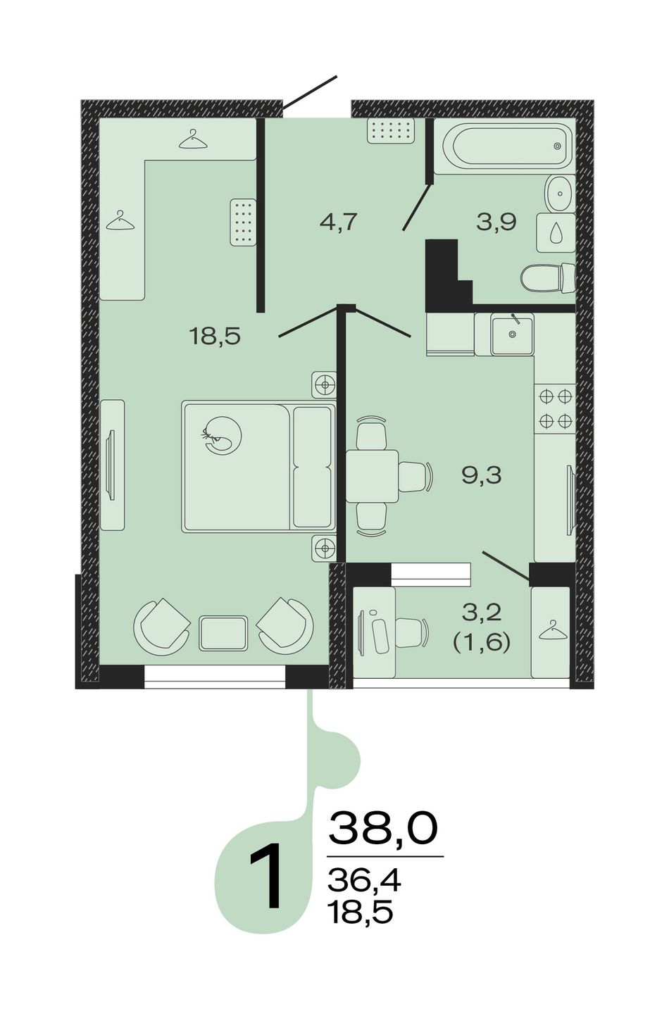 Жилая площадь18,5 м²