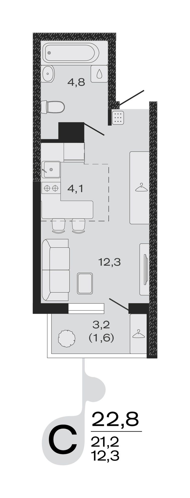 Студия — 22,8 м² 4/4 эт. в ЭВО