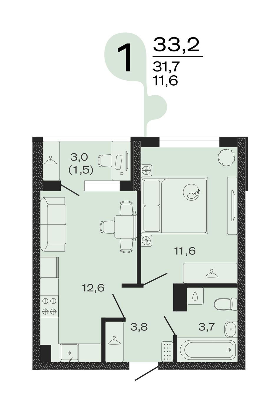 Общая площадь33,2 м²