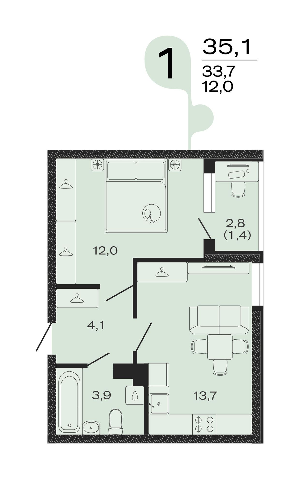Общая площадь35,1 м²
