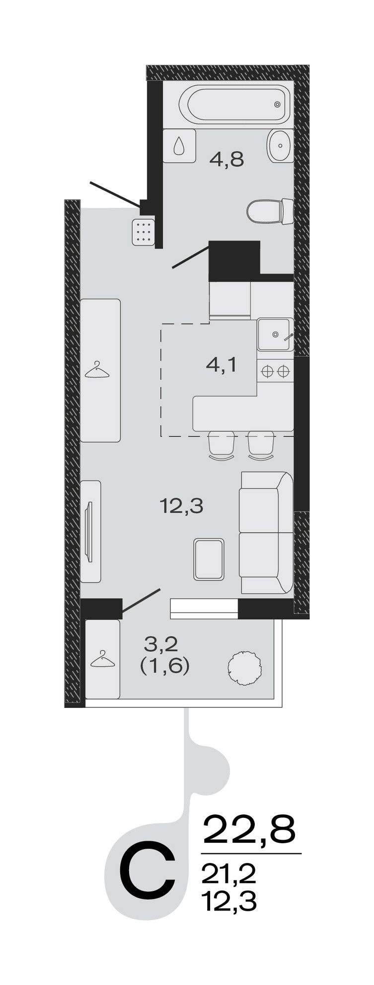 Общая площадь22,8 м²