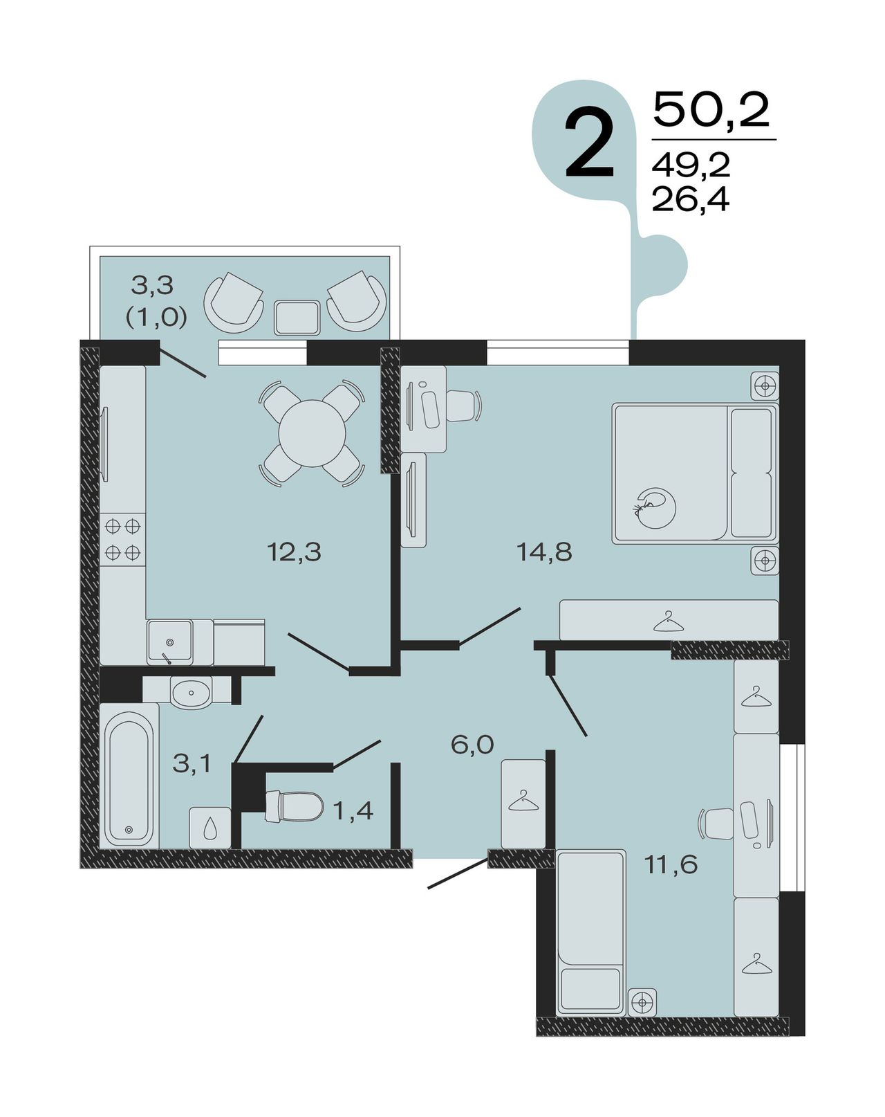 Общая площадь50,2 м²