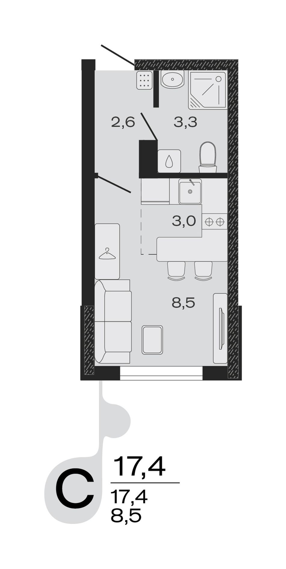 Студия — 17,4 м² 1/4 эт. в ЭВО