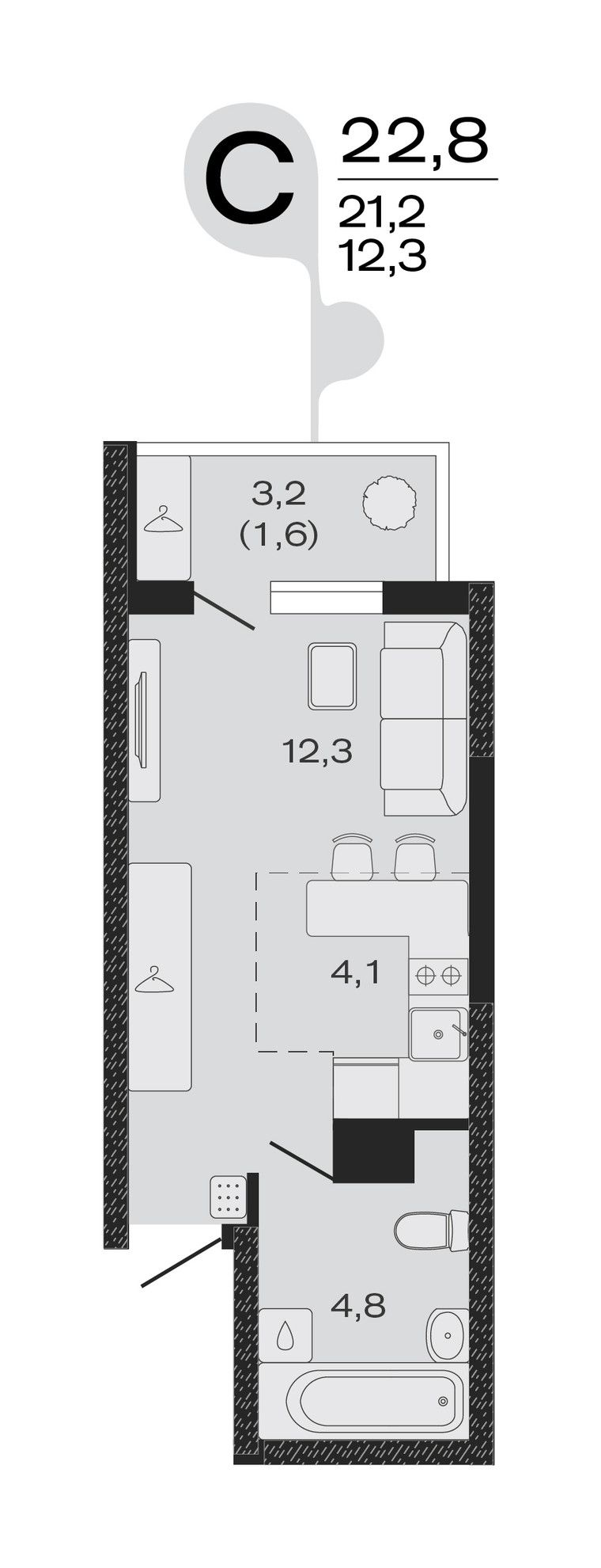 Студия — 22,8 м² 2/4 эт. в ЭВО