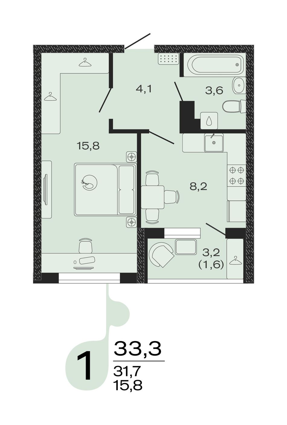 Общая площадь33,3 м²