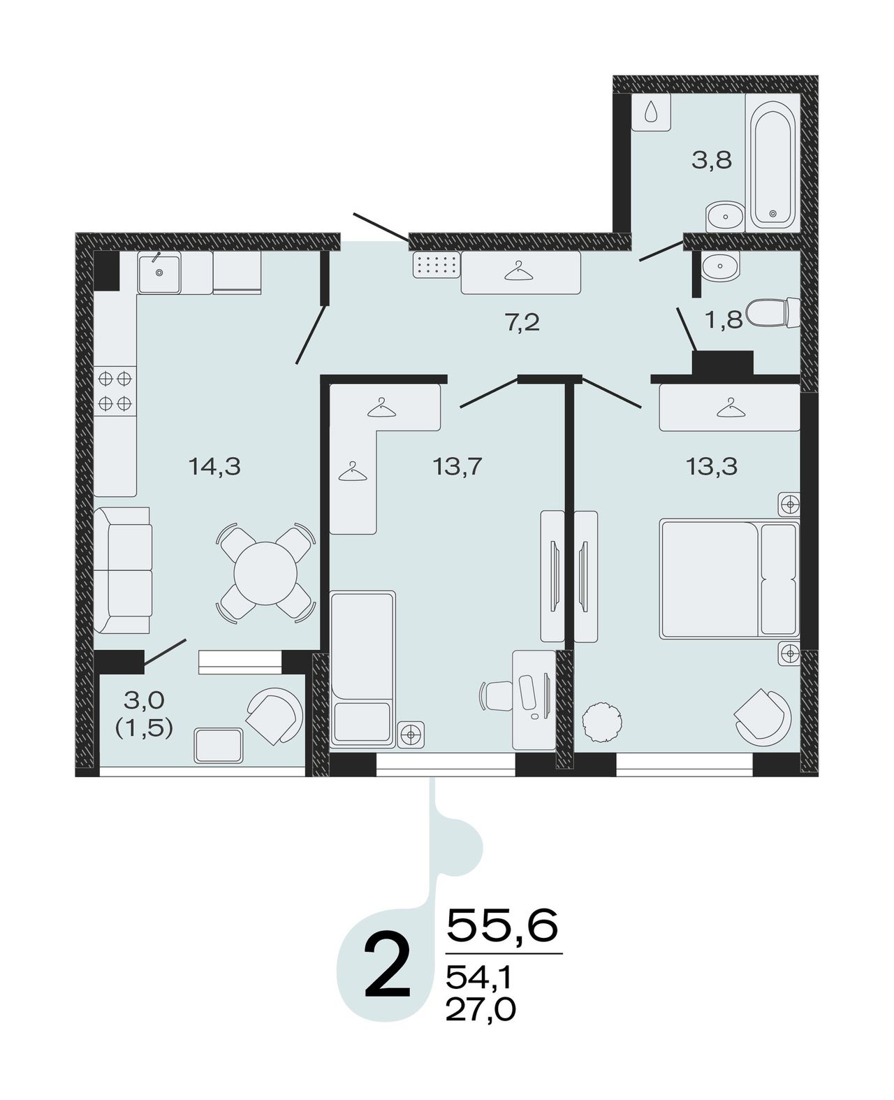 Общая площадь55,6 м²