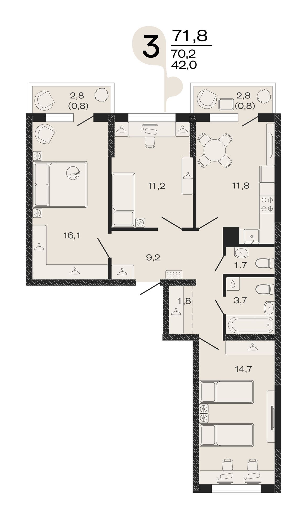 Общая площадь71,8 м²