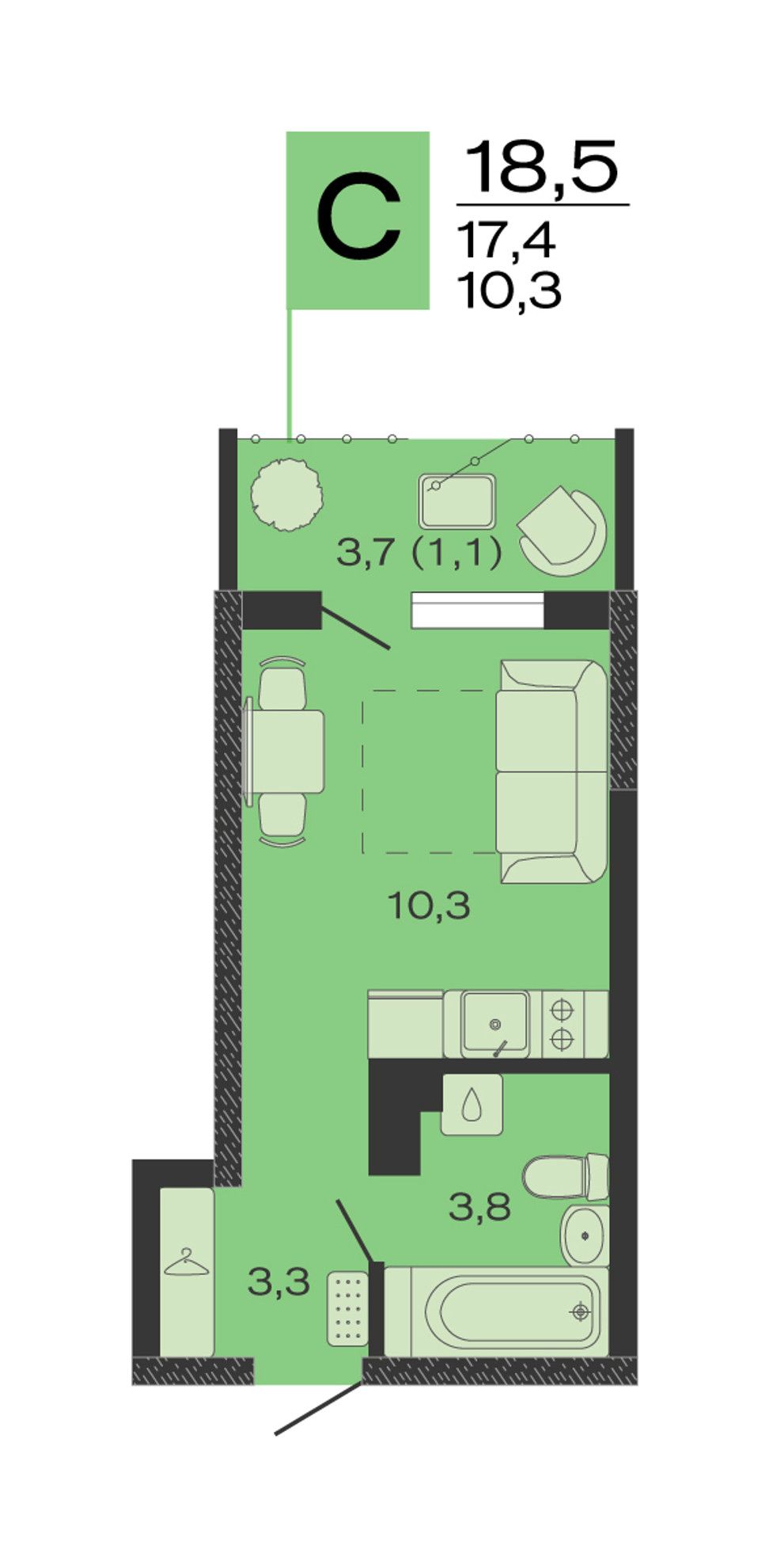 Общая площадь18,5 м²