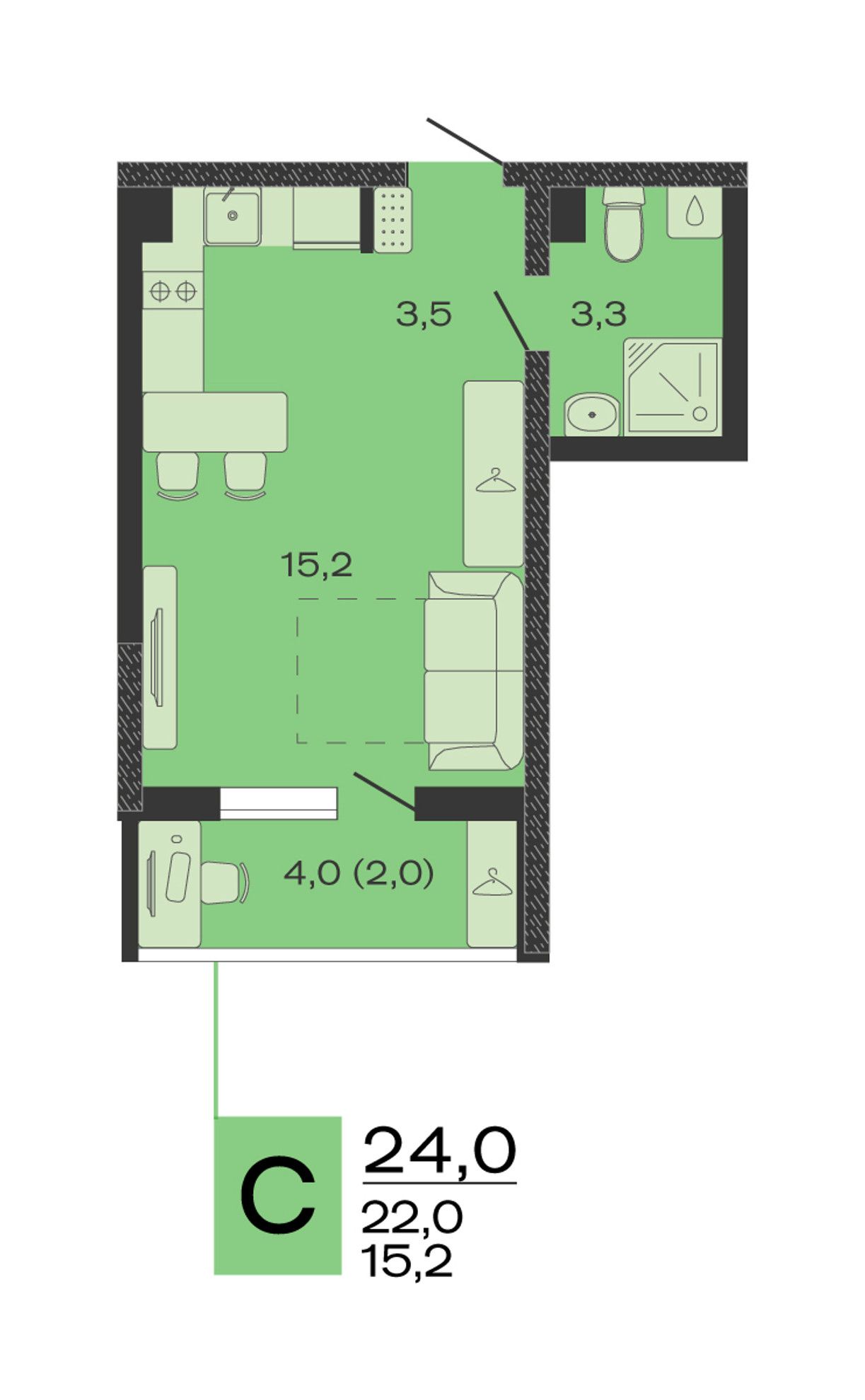 Студия — 24 м² 1/4 эт. в Дзенпарк