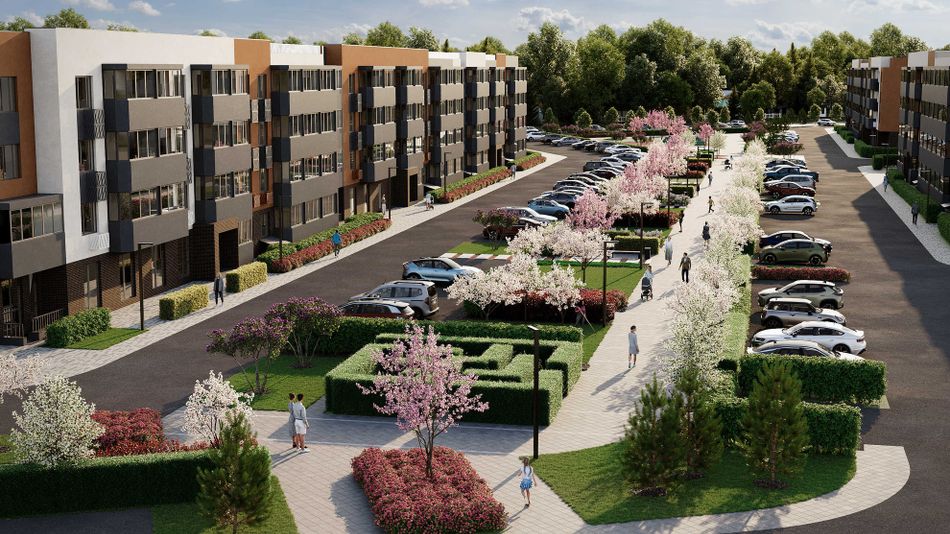 Комплекс строится на 9 гектарах, и состоит из 10 четырех этажных домов Комфорт класса с бесшумными лифтами, окруженных уникальным ландшафтным дизайном с детскими и спортивными площадками, а так же местами для отдыха.