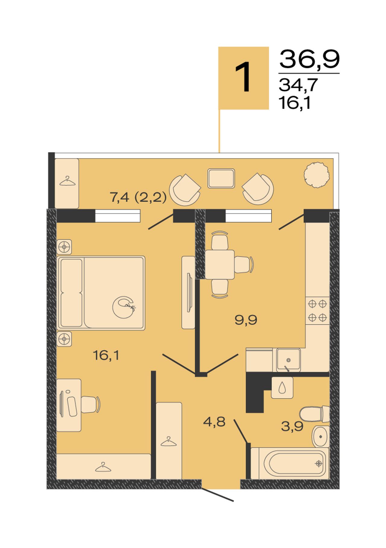 Общая площадь36,9 м²
