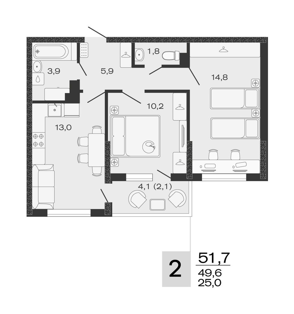 Общая площадь51,7 м²
