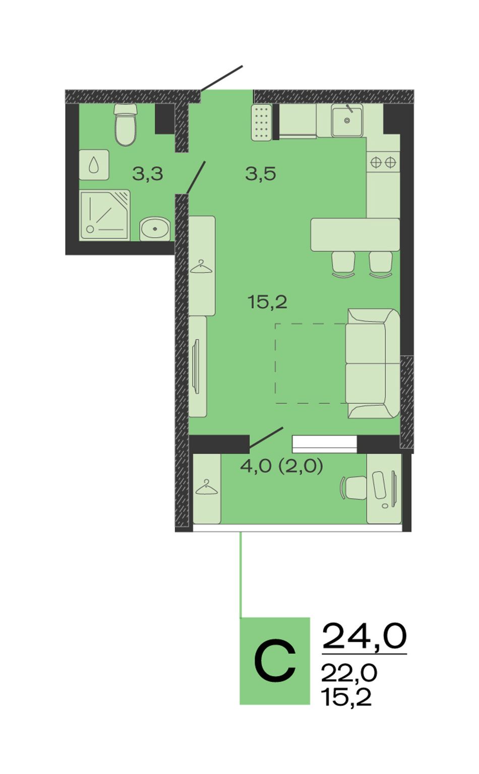 Студия — 24 м² 4/4 эт. в Дзенпарк