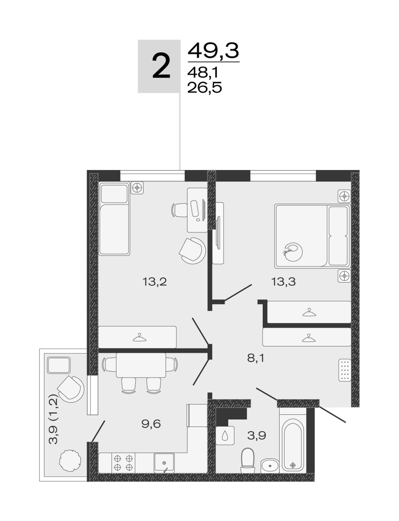 Общая площадь49,3 м²