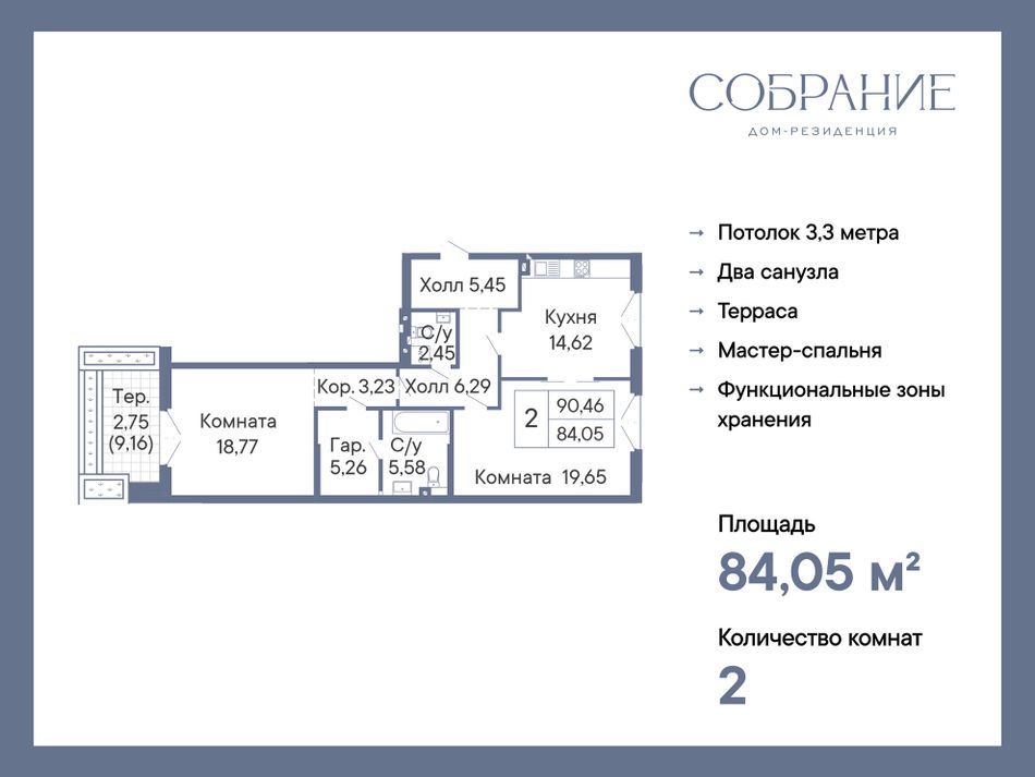 2-комнатная — 84,05 м² 1/7 эт. в Дом-Резиденция Собрание