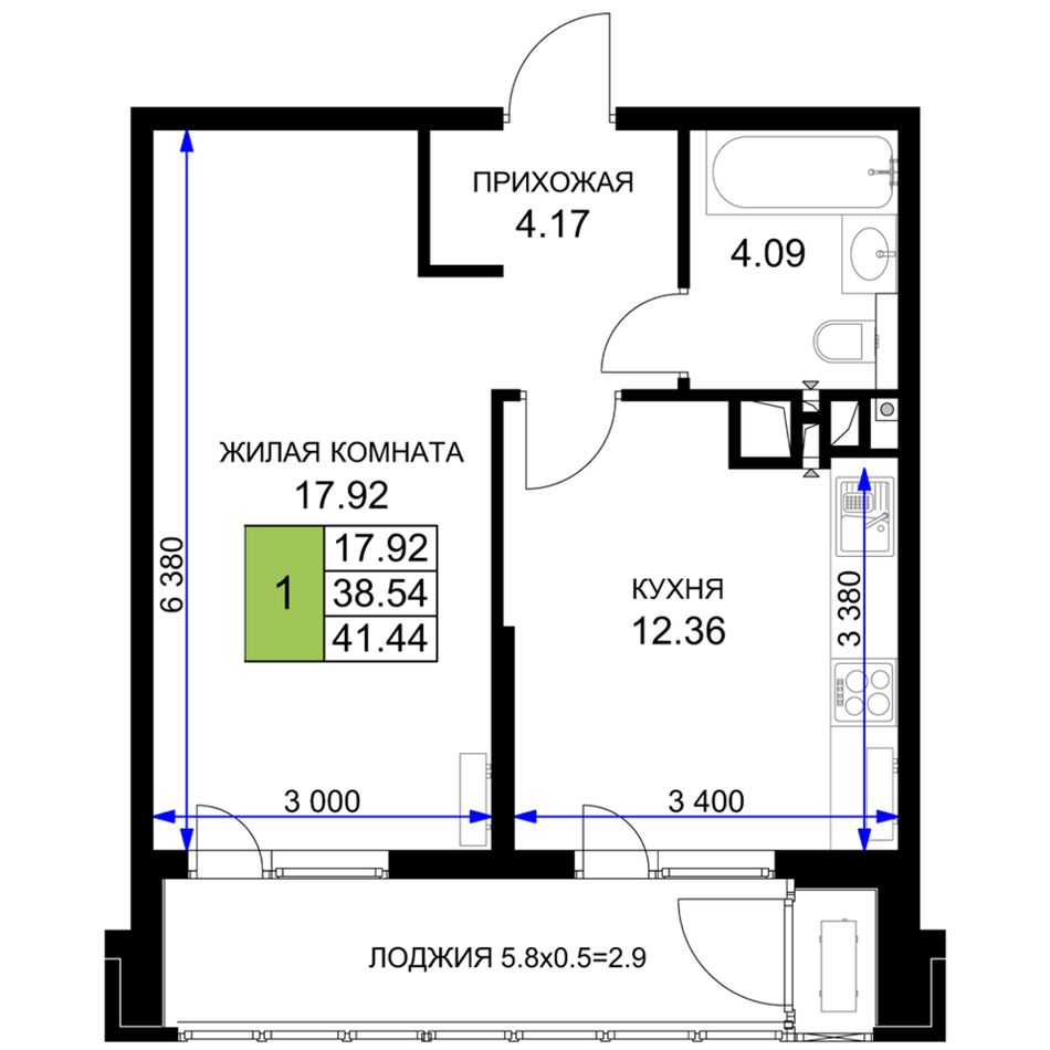 1-комнатная — 42,75 м² 14/16 эт. в Сегодня