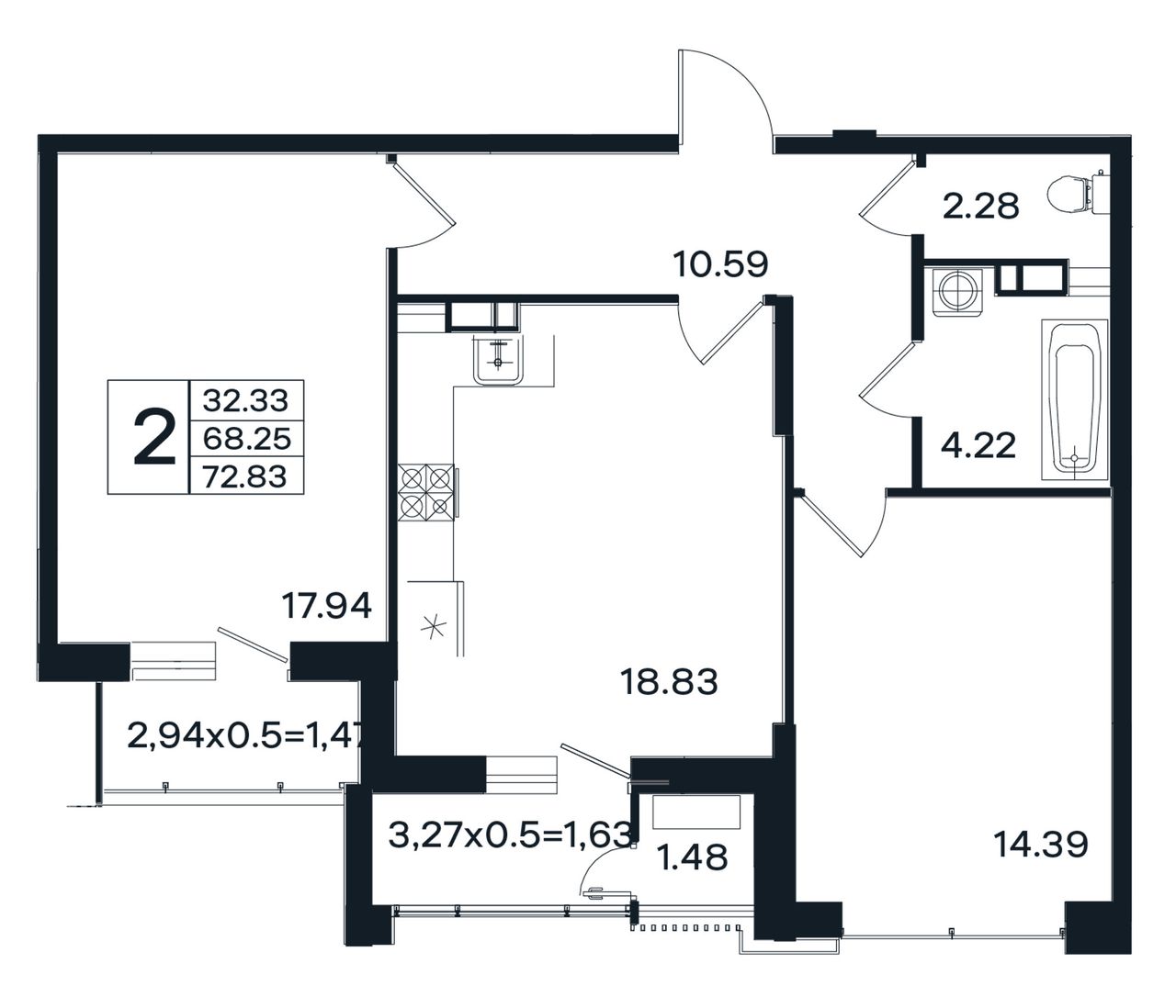 Общая площадь72,83 м²
