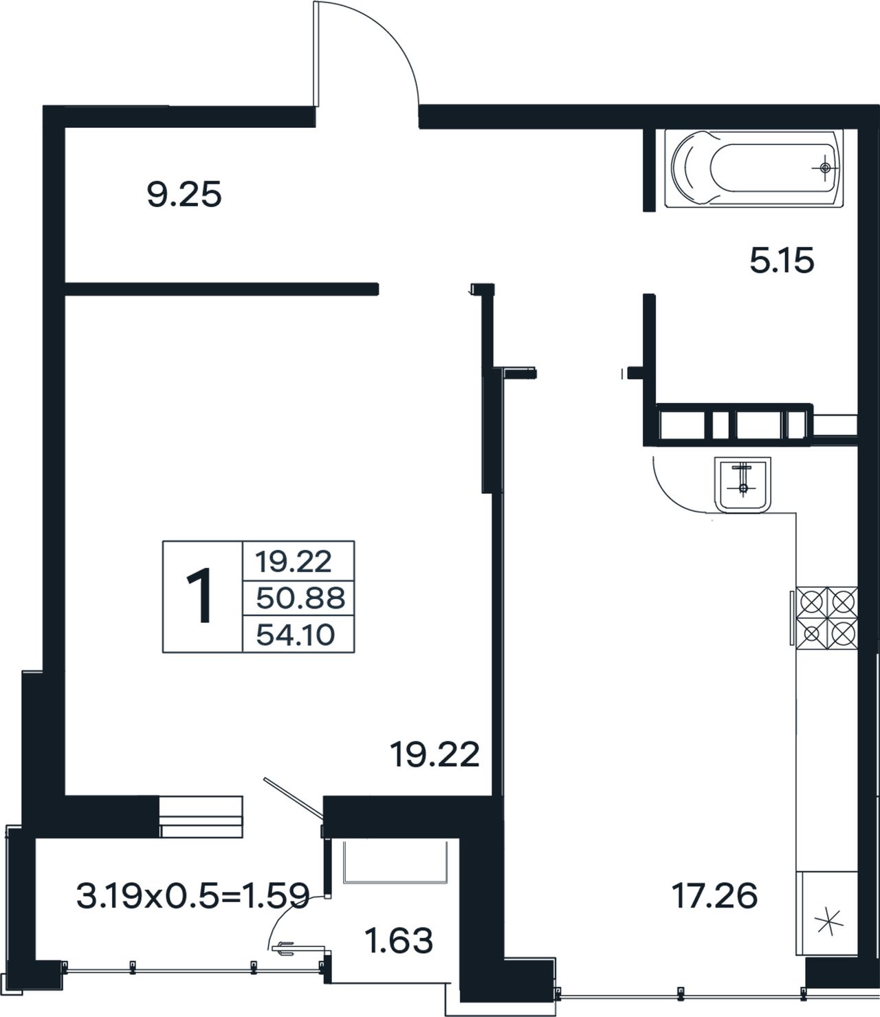 Общая площадь54,1 м²