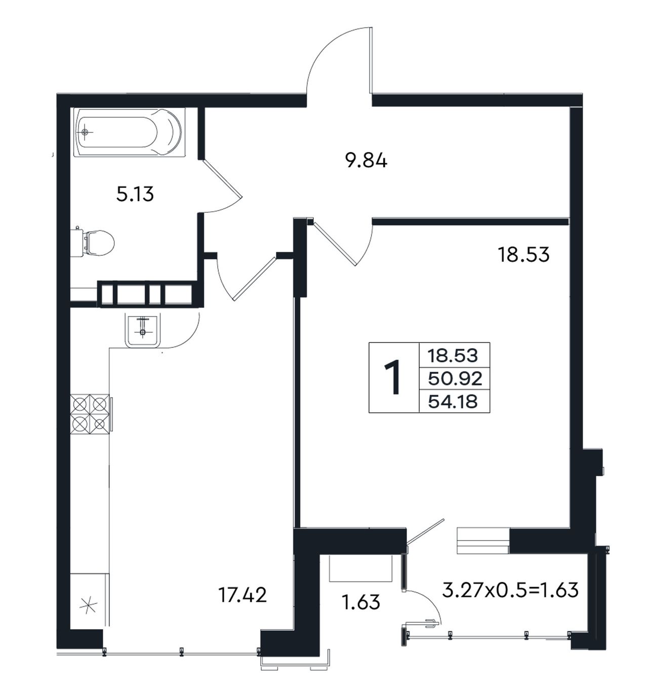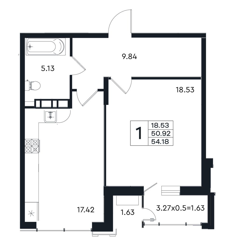 1-комнатная — 54,18 м² 10/12 эт. в ЭНДЕМИК