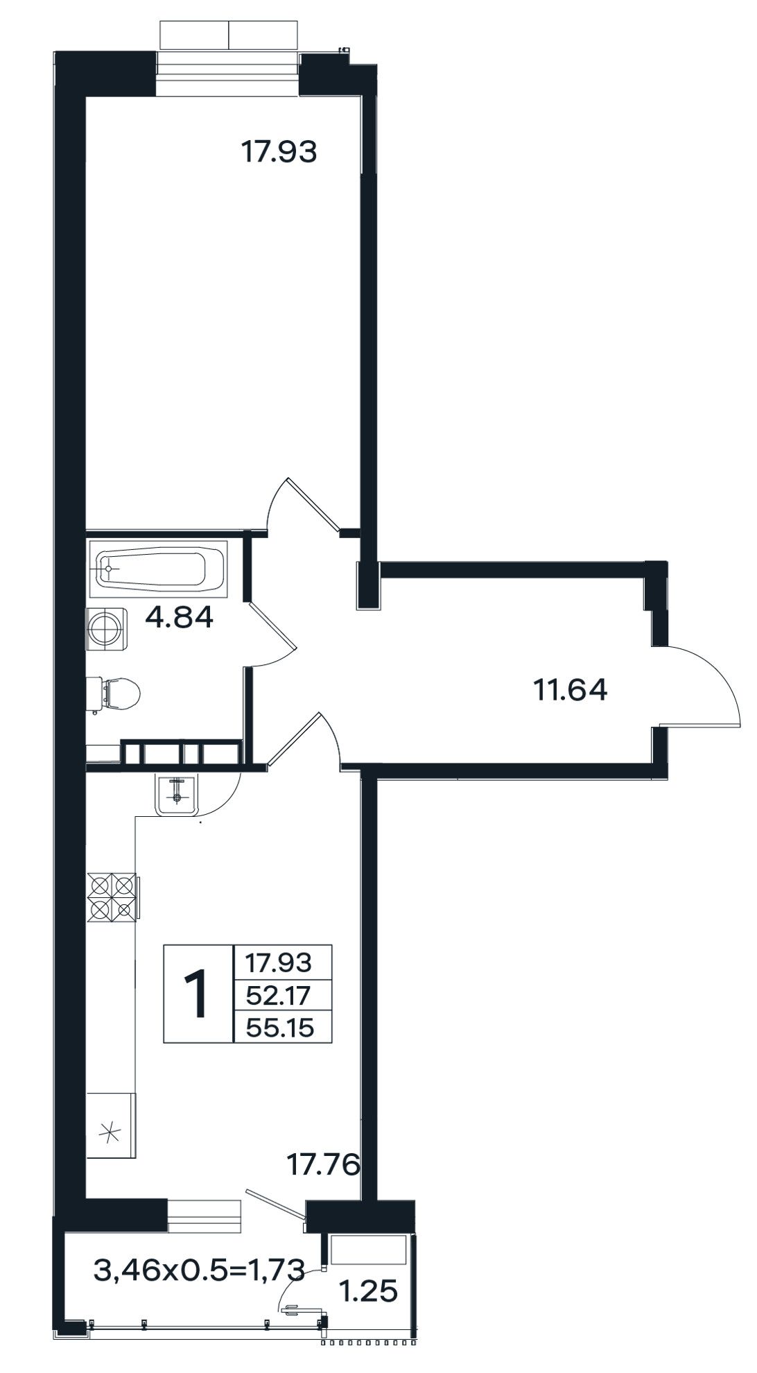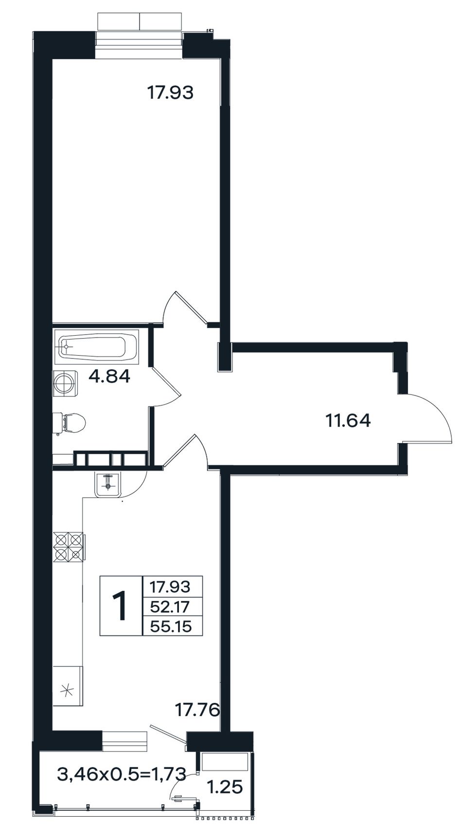1-комнатная — 55,15 м² 8/12 эт. в ЭНДЕМИК