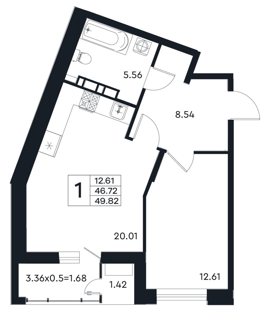 1-комнатная — 49,82 м² 6/12 эт. в ЭНДЕМИК